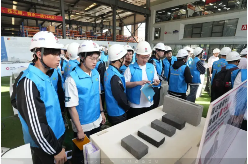 उपकरणे उत्पादन कार्यशाळेत, अभ्यागतांनी प्रयोगशाळा, असेंबली कार्यशाळा आणि डीबगिंग कार्यशाळेला भेट दिली, कच्च्या मालाच्या विश्लेषणापासून ते स्वयंचलित ब्लॉक-निर्मिती उपकरणांचे संपूर्ण संच या संपूर्ण प्रक्रियेबद्दल शिकले. नमुना क्षेत्रामध्ये, कंपनीच्या विटा बनवण्याच्या यंत्रसामग्रीचा वापर करून उत्पादित केलेल्या उत्पादनांची विविध वैशिष्ट्ये आणि अनुप्रयोग प्रदर्शित करण्यात आले होते, ज्यामध्ये घरातील आणि बाहेरील भिंतींच्या विटा, बाहेरील फरसबंदी विटा आणि कर्ब दगड, जलसंधारण आणि पूर नियंत्रण सामग्री, पर्यावरणीय उतार संरक्षण आणि गुरुत्वाकर्षण राखून ठेवलेल्या भिंती यांचा समावेश आहे. कॉन्फरन्स रूममध्ये कंपनीचा प्रमोशनल व्हिडिओ दाखवण्यात आला.