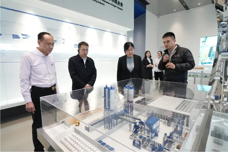 शिष्टमंडळाने प्रथम कंपनीच्या इतिहास प्रदर्शनी हॉलला भेट दिली. कंपनीच्या अधिकाऱ्यांच्या मार्गदर्शनाखाली, त्यांनी Quangong Machinery Co., Ltd. च्या चाळीस वर्षांच्या विकास प्रवासाचे सर्वसमावेशक विहंगावलोकन मिळवले, कंपनीचे विविध सन्मान, प्रमाणपत्रे आणि तांत्रिक कामगिरीचे परीक्षण केले. खाजगी अर्थव्यवस्थेच्या व्यापक विकासाचे एक ज्वलंत सूक्ष्म जग म्हणून ओळखून, शिष्टमंडळाने कंपनीचे मुख्य उद्योग म्हणून उत्पादनासाठीच्या दृढ वचनबद्धतेबद्दल आणि सतत नवनवीनतेच्या तत्त्वज्ञानाबद्दल प्रशंसा केली.