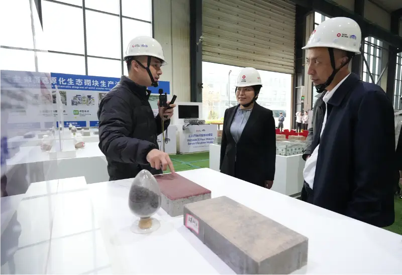 वीट नमुना प्रदर्शन क्षेत्रात, श्री. लिऊ मिन आणि त्यांच्या शिष्टमंडळाने उत्पादन निर्मिती प्रक्रिया आणि अनुप्रयोग परिस्थितींसंबंधी सादरीकरणे ऐकताना विविध पर्यावरणास अनुकूल आणि व्यावहारिक विटांचे नमुने तपासले. त्यांनी Quangong Machinery Co., Ltd. ची ग्रीन डेव्हलपमेंटची बांधिलकी आणि घनकचऱ्याच्या संसाधन-कार्यक्षम वापराला चालना देण्यासाठी पुढाकार घेतल्याबद्दल प्रशंसा केली, कंपनीला सरकारी धोरणे आणि बाजाराच्या मागणीशी जुळणारी आणखी उत्पादने विकसित करण्यास प्रोत्साहन दिले.