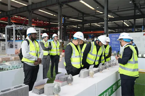 क्यूजीएम प्रदर्शन हॉलमध्ये, उपाध्यक्ष आणि त्यांच्या पक्षाने व्हिडिओ सामग्री, वाळू टेबल मॉडेल आणि भौतिक प्रदर्शनांद्वारे कंपनीच्या 40 वर्षांच्या विकास प्रक्रियेचा अनुभव घेतला. सुरुवातीच्या मॅन्युअल वीट बनवण्याच्या मशीनपासून ते जगातील आघाडीच्या बुद्धिमान उपकरणांपर्यंत, एकाच उत्पादनापासून संपूर्ण औद्योगिक साखळी लेआउटपर्यंत काँक्रीट ब्लॉक्स, पारगम्य विटा आणि पर्यावरणीय उतार संरक्षण विटांसारख्या शेकडो हिरव्या बांधकाम साहित्य, क्यूजीएमने नेहमीच "एक चांगले जीवन" बनविले आहे. त्याचे स्वतंत्रपणे विकसित केलेले घनकचरा वीट बनवण्याचे तंत्रज्ञान देश-विदेशातील शहरांमध्ये लागू केले गेले आहे, दरवर्षी 10 दशलक्ष टनांपेक्षा जास्त बांधकाम कचरा शोषून घेतो, जो "शून्य-कचरा शहर" बांधण्यासाठी एक बेंचमार्क प्रकरण बनला आहे.