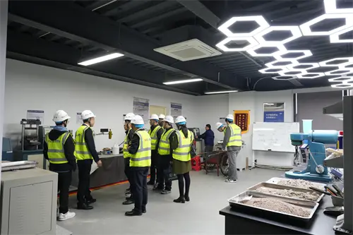 क्यूगॉंग वीट सामग्री आर अँड डी प्रयोगशाळेत चालत, भेट देणारी टीम उच्च-परिशुद्धता उपकरणे आणि व्यस्त वैज्ञानिक संशोधन दृश्यांद्वारे आकर्षित झाली. हे केवळ नवीन बांधकाम सामग्रीसाठी "इनक्यूबेटर" नाही तर घनकचरा एकूण गुणोत्तर आणि वीट कॉम्प्रेसिव्ह स्ट्रेंथ टेस्टिंगचे ऑप्टिमायझेशन यासारखे मुख्य विषय देखील करतात.