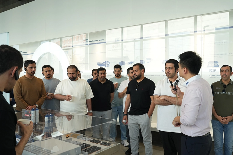 इंटेलिजेंट इक्विपमेंट क्लाउड सर्व्हिस प्लॅटफॉर्मच्या कंट्रोल सेंटरमध्ये, शिष्टमंडळाने दूरस्थपणे उपकरणांचे परीक्षण कसे केले जाऊ शकते हे दाखवून देणारे स्मार्ट ऑपरेशन आणि देखभाल परिस्थिती पाहिली. Quanzhou मशिनरीचा मुख्य नवोपक्रम म्हणून, हे प्लॅटफॉर्म क्लाउड कंप्युटिंग, बिग डेटा आणि आर्टिफिशियल इंटेलिजन्स यांसारख्या अत्याधुनिक तंत्रज्ञानांना एकत्रित करते. हे जगभरातील 1,000 हून अधिक बुद्धिमान उपकरणे युनिट्समधून रिअल-टाइम ऑपरेशनल डेटा संकलित करू शकते, ऑनलाइन मॉनिटरिंग, रिमोट अपग्रेड, फॉल्ट अंदाज आणि निदान आणि उपकरणे आरोग्य मूल्यांकन यासह संपूर्ण जीवनचक्र व्यवस्थापन कार्ये सक्षम करते. प्रतिनिधी मंडळाच्या सदस्यांनी मध्यपूर्वेतील प्लॅटफॉर्मच्या ऍप्लिकेशन केसेस आणि सेवेच्या प्रतिसादाच्या गतीबद्दल चौकशी केली, परदेशातील ग्राहकांसाठी त्याच्या कार्यक्षम आणि कमी किमतीच्या ऑपरेशन आणि देखभाल उपायांची अत्यंत प्रशंसा केली. त्यांचा विश्वास होता की हे तंत्रज्ञान UAE च्या पायाभूत सुविधा क्षेत्राची बुद्धिमान आणि कार्यक्षम उपकरणांची मागणी पूर्ण करते.