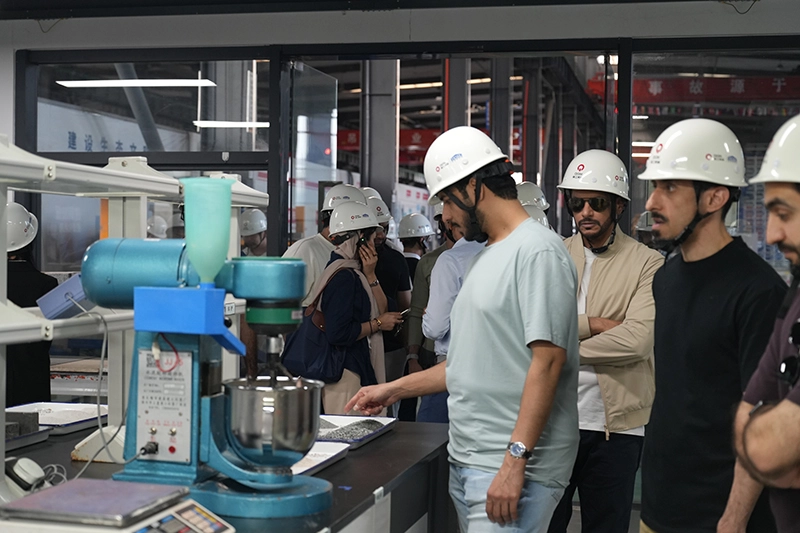 वीट बनवण्याच्या प्रयोगशाळेत, शिष्टमंडळाने Quanzhou मशिनरीच्या "टेलर-मेड" R&D क्षमता पाहिल्या. फुझो युनिव्हर्सिटी आणि बीजिंग युनिव्हर्सिटी ऑफ सिव्हिल इंजिनीअरिंग अँड आर्किटेक्चर यांसारख्या विद्यापीठांसह संयुक्तपणे स्थापन केलेला संशोधन आणि विकास आधार म्हणून, ते प्रगत सामग्री चाचणी आणि सूत्र विकास उपकरणांनी सुसज्ज आहे, कच्चा माल, हवामान परिस्थिती आणि क्लायंटच्या क्षेत्राच्या प्रकल्प आवश्यकतांच्या वैशिष्ट्यांवर आधारित वैयक्तिकृत वीट-निर्मिती समाधान प्रदान करण्यास सक्षम आहे.