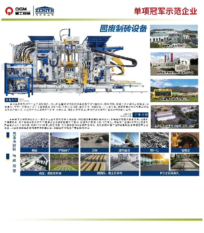 Fujian QGM Co., Ltd. ही पर्यावरणीय ब्लॉक बनवणाऱ्या उपकरणांच्या संशोधन आणि विकास, उत्पादन आणि विक्रीमध्ये विशेष असणारी एक उच्च-तंत्रज्ञान कंपनी आहे. याच्या जगभरात चार सदस्य कंपन्या आहेत आणि त्यांचे मुख्यालय क्वानझोउ, फुजियान येथे आहे. Quanzhou मधील QGM चा उत्पादन आधार उपकरणे आणि साचा उत्पादन तळांमध्ये विभागलेला आहे. उपकरणे उत्पादन बेस 130,000 चौरस मीटर क्षेत्र व्यापते आणि 40,000 चौरस मीटरची उत्पादन कार्यशाळा आहे; मोल्ड उत्पादन बेस 12,000 चौरस मीटर क्षेत्र व्यापतो आणि कार्यशाळा 9,000 चौरस मीटर आहे. आतापर्यंत, कंपनीने 300 हून अधिक उत्पादन पेटंट जिंकले आहेत, आणि उद्योग आणि माहिती तंत्रज्ञान मंत्रालय, उद्योग आणि माहिती तंत्रज्ञान मंत्रालय सेवा-देणारं उत्पादन प्रात्यक्षिक प्रकल्प एंटरप्राइझ, नॅशनल ग्रीन फॅक्टरी आणि इतर राष्ट्रीय शीर्षकांच्या निर्मिती सिंगल चॅम्पियन प्रात्यक्षिक उपक्रमांची पहिली बॅच सलग जिंकली आहे.